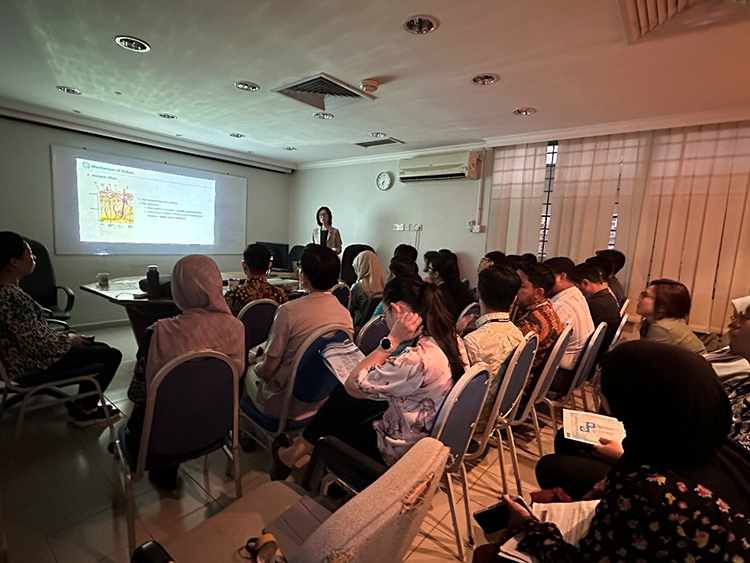 當(dāng)日下午,美寶團(tuán)隊(duì)南下馬六甲的仁愛醫(yī)院(Mahkota Medical Centre)迎來藥劑師專場培訓(xùn)。作為南馬地區(qū)最大的私立醫(yī)療機(jī)構(gòu)之一,該院積極響應(yīng)此次培訓(xùn),因場地限制,主辦方同步開放線上參會通道,除藥劑師外吸引超20位院內(nèi)多科醫(yī)護(hù)人員參與。課程圍繞再生類藥品的作用機(jī)制、用藥管理與患者教育展開,推動“藥學(xué)服務(wù)+療效管理”理念落地。