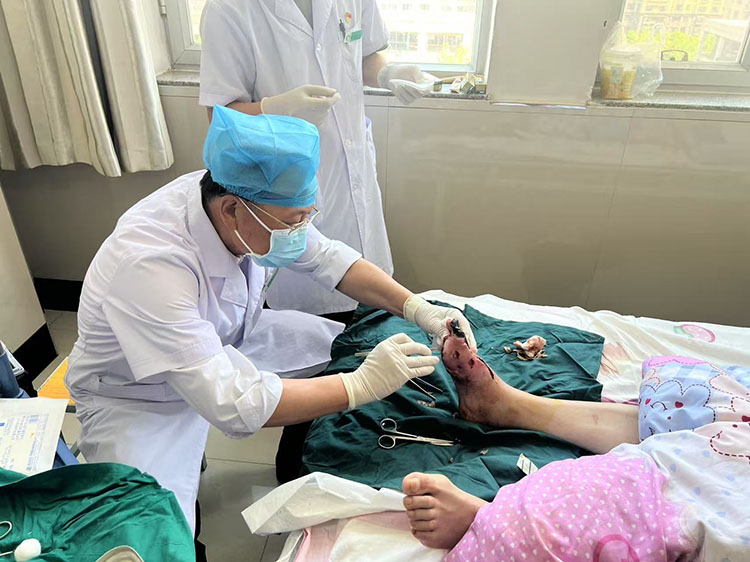 2025年5月14日,中國中西醫(yī)結(jié)合學(xué)會燒傷專業(yè)委員會常務(wù)委員、《中國燒傷創(chuàng)瘍雜志》副總編輯王洪生及醫(yī)療部宋小紅主任,應(yīng)邀到珠海市第五人民醫(yī)院燒傷整形科會診一例嚴重三度化學(xué)燒傷病人和一例電擊燒傷患者,王洪生教授親自示范深度燒傷創(chuàng)面的清創(chuàng)處理,這次會診受到科室醫(yī)護和患者的一致好評。