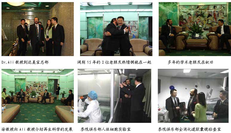 2009年11月12日上午10時(shí),Dr.Ali教授應(yīng)邀來(lái)到了人體生命再生科學(xué)發(fā)源地——美寶國(guó)際集團(tuán)總部參觀考察,徐榮祥教授在貴賓室熱情接見(jiàn)了這位多年的學(xué)術(shù)老朋友。Dr.Ali教授是再生醫(yī)學(xué)的忠誠(chéng)追隨者和實(shí)踐家,他自1996年與燒傷再生醫(yī)學(xué)技術(shù)創(chuàng)始人徐榮祥教授結(jié)識(shí),開(kāi)始致力于燒傷再生醫(yī)療技術(shù)的臨床研究與應(yīng)用,成功運(yùn)用該技術(shù)救治了大量中小面積的燒傷患者和一些嚴(yán)重的創(chuàng)瘍患者,取得了良好的治療效果,先后在國(guó)際專業(yè)期刊上先后發(fā)表了多篇有關(guān)燒傷再生醫(yī)學(xué)的論文,在燒傷再生醫(yī)學(xué)領(lǐng)域具有較深的造詣,在阿聯(lián)酋和中東具有較高的學(xué)術(shù)地位和影響力。會(huì)面期間,徐教授與Dr. Ali教授一起追憶了燒傷皮膚再生研究的發(fā)展歷史,徐教授向其介紹了生命再生醫(yī)學(xué)與科學(xué)近年來(lái)在燒傷皮膚再生以及整個(gè)人體再生復(fù)原科學(xué)領(lǐng)域的喜人進(jìn)展與成就,共同暢談了再生醫(yī)學(xué)與科學(xué)的未來(lái)發(fā)展,在科學(xué)和學(xué)術(shù)的高度上達(dá)成了共識(shí)。會(huì)談結(jié)束后,在徐教授的親自陪同下,Dr. Ali教授饒有興致地參觀了美寶人體再生復(fù)原俱樂(lè)部、人體細(xì)胞研究所、全消化道膠囊鏡等。中國(guó)燒傷創(chuàng)瘍科技中心臨床部陳永翀教授在美寶集團(tuán)總部多功能廳用多媒體生動(dòng)地向Dr. Ali教授展示了再生醫(yī)學(xué)在胃腸組織器官再生、斷指再生和治療癌癥方面取得的新進(jìn)展。整個(gè)訪問(wèn)、參觀過(guò)程中,Dr. Ali教授對(duì)再生醫(yī)學(xué)、科學(xué)取得的新成就表示出濃厚的興趣和完全的折服,并不止一次感嘆:從與徐教授結(jié)識(shí)的第一天起,對(duì)徐教授提出的關(guān)于皮膚再生、以及其他方面的新觀念、新理論和臨床結(jié)果都堅(jiān)信不疑,盡管當(dāng)時(shí)一些關(guān)于機(jī)理的問(wèn)題還沒(méi)有定論,但他始終相信那只是時(shí)間的問(wèn)題。今天能夠見(jiàn)到徐教授,他不僅得到了以前遺留問(wèn)題的最終答案,并看到了再生科學(xué)的飛速發(fā)展,更加堅(jiān)定了他為該科學(xué)獻(xiàn)身的決心。期間,國(guó)際部孫霞總經(jīng)理也熱情接見(jiàn)了Dr.Ali教授,并就下一步阿聯(lián)酋及中東地區(qū)的再生醫(yī)學(xué)科學(xué)的學(xué)術(shù)發(fā)展與醫(yī)療開(kāi)發(fā)工作進(jìn)行了認(rèn)真的商談,具體討論了下階段的發(fā)展計(jì)劃。