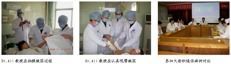 2009年11月16日下午,Dr. Ali結(jié)束了2009年北京國(guó)際微創(chuàng)外科大會(huì)的學(xué)術(shù)演講后,便啟程趕到了山東省泰安市,開(kāi)始了對(duì)泰山醫(yī)學(xué)院附屬醫(yī)院的參觀、考察和學(xué)術(shù)交流之旅。泰山醫(yī)學(xué)院附屬醫(yī)院對(duì)Dr.Ali的到來(lái)也非常重視,業(yè)務(wù)院長(zhǎng)胡建功教授親自組織安排了這次國(guó)際學(xué)術(shù)交流活動(dòng),醫(yī)務(wù)處的楊曉雯處長(zhǎng)則認(rèn)真落實(shí)了各項(xiàng)具體的組織、策劃、接待、協(xié)調(diào)以及做歡迎橫幅、發(fā)通知等工作,而燒傷科主任徐西勝、王廣順教授和護(hù)士長(zhǎng)公怌欣則動(dòng)員全科醫(yī)護(hù)人員積極行動(dòng)起來(lái),做好迎接國(guó)外專家來(lái)參觀考察和學(xué)術(shù)交流的各項(xiàng)準(zhǔn)備工作,燒傷科里洋溢著節(jié)日氛圍。