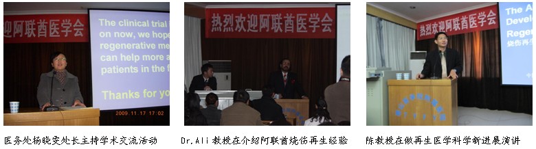 2009年11月11日至11月18日,阿拉伯聯(lián)合酋長(zhǎng)國(guó)(阿聯(lián)酋)醫(yī)師學(xué)會(huì)主席、整形外科學(xué)會(huì)主席、迪拜醫(yī)學(xué)院碩士研究生導(dǎo)師Dr. Ali Al Numairy 教授應(yīng)第37屆北京國(guó)際微創(chuàng)外科大會(huì)和中國(guó)中西醫(yī)結(jié)合學(xué)會(huì)燒傷專業(yè)委員會(huì)的邀請(qǐng),來(lái)到中國(guó)進(jìn)行為期一周的再生醫(yī)學(xué)學(xué)術(shù)演講、經(jīng)驗(yàn)交流和考察、學(xué)習(xí)大面積深度燒傷再生治療的學(xué)術(shù)之旅。在短短的一周時(shí)間里,Dr. Ali Al Numairy有幸再次見(jiàn)到了中國(guó)青年科學(xué)家、燒傷再生醫(yī)學(xué)與人體生命再生科學(xué)的創(chuàng)立人徐榮祥教授,雙方進(jìn)行了廣泛的再生科學(xué)領(lǐng)域的交流,還出席了在北京協(xié)和醫(yī)院舉辦的2009年第37屆北京國(guó)際微創(chuàng)外科大會(huì),并在會(huì)議上進(jìn)行了燒傷濕潤(rùn)暴露療法專題演講,引起了全場(chǎng)轟動(dòng)。隨后,Dr. Ali Al Numairy教授又趕到中國(guó)燒傷創(chuàng)瘍泰山醫(yī)院——泰山醫(yī)學(xué)院附屬醫(yī)院燒傷科,參觀考察大面積深度燒傷的皮膚再生治療技術(shù)并進(jìn)行了深入的學(xué)術(shù)交流,整個(gè)行程內(nèi)容豐富、精彩紛呈、收獲頗豐!