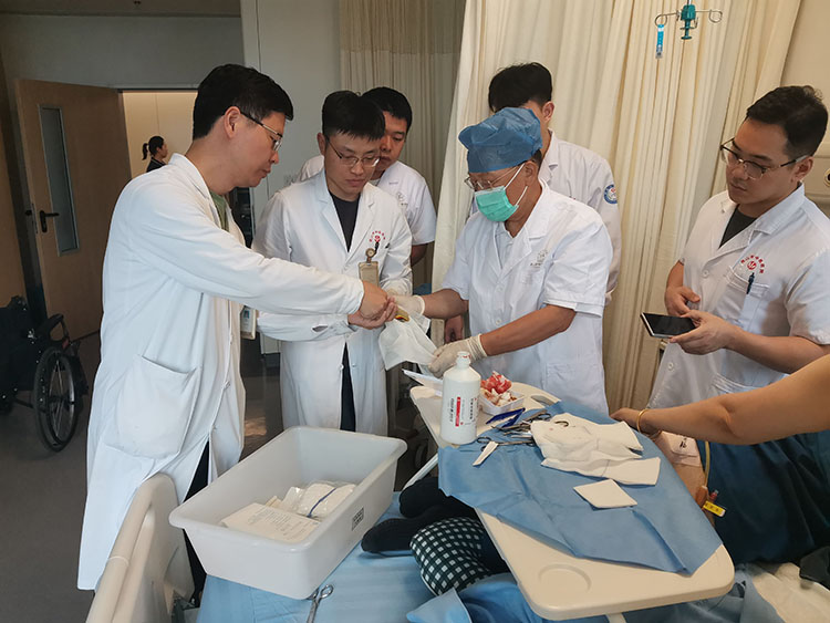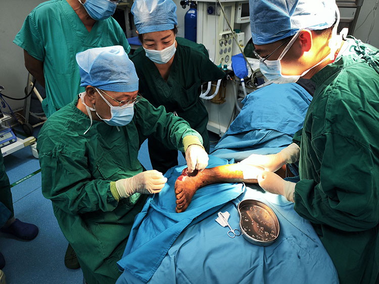 9月11日,應(yīng)廊坊市安次區(qū)醫(yī)院外科邀請(qǐng),《中國(guó)燒傷創(chuàng)瘍雜志》常務(wù)編委、燒傷創(chuàng)瘍?cè)偕t(yī)療技術(shù)臨床專家趙瑞慶,為一例四級(jí)糖尿病足合并下肢血管閉塞患者行皮簇種植術(shù),術(shù)中順利出血不多,病人安返病區(qū),得到了患者和主治醫(yī)生的感謝和贊揚(yáng)。