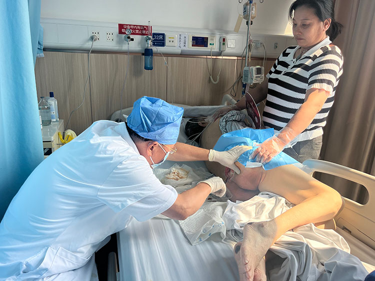 9月5日,中國(guó)中西醫(yī)結(jié)合學(xué)會(huì)燒傷專業(yè)委員會(huì)常務(wù)委員、《中國(guó)燒傷創(chuàng)瘍雜志》副總編輯王洪生主任到廣東揭陽(yáng)惠來(lái)縣人民醫(yī)院分別會(huì)診了糖足,壓瘡,燒傷病人合計(jì)8位患者,并親自示范規(guī)范換藥并詳細(xì)講解下一步治療方案和注意事項(xiàng)。