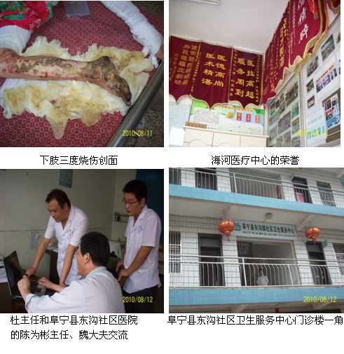 2010年8月9日~13日,中國(guó)中西醫(yī)結(jié)合學(xué)會(huì)燒傷專(zhuān)業(yè)委員會(huì)常委、中國(guó)燒傷創(chuàng)瘍雜志社常務(wù)編委、北京美寶燒傷創(chuàng)瘍研究所臨床部專(zhuān)家杜福勤教授和學(xué)會(huì)駐南京辦事處劉恒主任一同走訪了大豐市人民醫(yī)院、鹽城市鹽阜醫(yī)院、射陽(yáng)縣海河燒傷醫(yī)療中心、濱??h人民醫(yī)院、阜寧縣人民醫(yī)院、阜寧婦幼醫(yī)院、阜寧仁慈醫(yī)院、阜寧縣東溝社區(qū)服務(wù)中心。