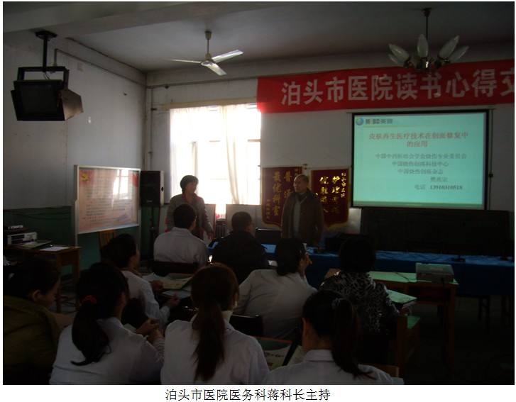 任丘市人民醫(yī)院是一所二級甲等綜合性醫(yī)院;泊頭市人民醫(yī)院是贊皇縣唯一醫(yī)療、教學(xué)、科研、急救、康復(fù)為一體的綜合性二級甲等醫(yī)院,兩院均為當(dāng)?shù)睾诵尼t(yī)院,承擔(dān)著大量重要的醫(yī)療救治工作。此次培訓(xùn),樊兆宗教授主講內(nèi)容為再生醫(yī)療技術(shù)在多學(xué)科的應(yīng)用,樊教授通過典型臨床病例的治療介紹了再生醫(yī)療技術(shù)在外科創(chuàng)面、骨外露、皮膚潰瘍(褥瘡)、糖尿病足、肛腸換藥等多學(xué)科的臨床應(yīng)用。