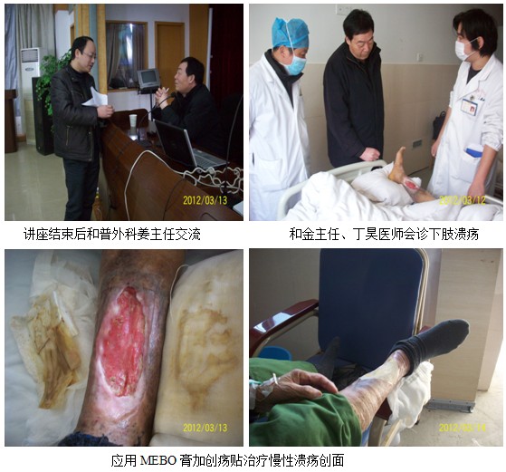 2012年3月13日~14日應(yīng)大外科金瑞主任和醫(yī)務(wù)處方衛(wèi)東主任的邀請(qǐng),中國(guó)中西醫(yī)結(jié)合學(xué)會(huì)燒傷專業(yè)委員會(huì)常委、北京美寶燒傷創(chuàng)瘍研究所臨床部主任、燒傷創(chuàng)瘍專家杜福勤主任與學(xué)會(huì)駐宣城市吳崇巍同志應(yīng)邀為中心醫(yī)院外科、糖尿病科、骨科、腫瘤??谱髁恕霸偕鷱?fù)原技術(shù)在燒傷創(chuàng)傷潰瘍創(chuàng)面的治療新進(jìn)展”學(xué)術(shù)講座。下午15:00講座開始,大外科金瑞主任主持,醫(yī)生護(hù)士50余人參加了學(xué)習(xí),院醫(yī)務(wù)處方衛(wèi)東主任、科教科劉朝明主任、普外科姜主任等參加講座學(xué)習(xí),杜主任利用多媒體圖文并茂,通俗易懂的進(jìn)行了講解,講座進(jìn)行了兩個(gè)多小時(shí),講座結(jié)束時(shí)杜主任和姜主任就燒傷創(chuàng)面、創(chuàng)傷創(chuàng)面、潰瘍創(chuàng)面臨床有關(guān)創(chuàng)面治療進(jìn)行了交流,回答了臨床遇到的問題,并和丁昊醫(yī)師多次示范應(yīng)用MEBO燒傷膏和創(chuàng)瘍貼為下肢潰瘍患者規(guī)范換藥,為推廣再生復(fù)原醫(yī)療技術(shù)奠定了良好基礎(chǔ),達(dá)到了深入推廣再生復(fù)原醫(yī)療技術(shù)地目的,深受醫(yī)護(hù)人員的歡迎。