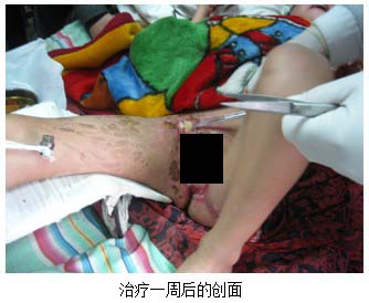 2011年11月7日,經(jīng)過七天的治療,竇道內(nèi)已長出新生組織,創(chuàng)面邊緣上皮已明顯匍匐生長,創(chuàng)面內(nèi)的腥臭味已消失,家屬和醫(yī)生看到了創(chuàng)面明顯好轉(zhuǎn),增強(qiáng)了治療信心,醫(yī)生也對(duì)皮膚原位再生復(fù)原技術(shù)有了更深一步的了解?;純耗壳霸诶^續(xù)住院治療中,敬請關(guān)注后續(xù)報(bào)道。