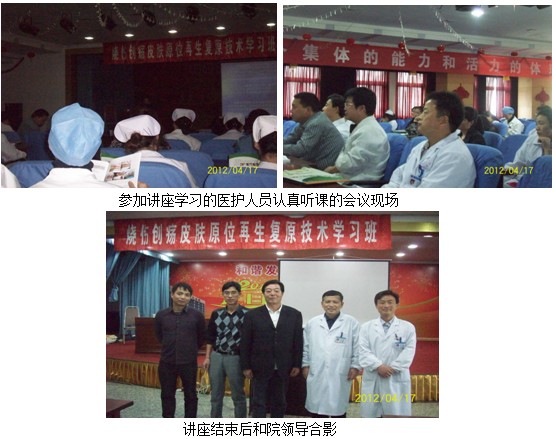 2012年4月17日中國中西醫(yī)結合學會燒傷專業(yè)委員會委員、北京美寶燒傷創(chuàng)瘍研究所臨床部研究員、燒傷創(chuàng)瘍專家杜福勤主任和陳義勝同志應銅陵人民醫(yī)院業(yè)務院長胡洪翔院長和醫(yī)務科的邀請,在人民醫(yī)院舉辦再生復原技術培訓班,下午兩點半培訓正式開始,醫(yī)務科張科長主持,杜福勤主任以“再生復原技術在燒傷創(chuàng)傷潰瘍創(chuàng)面臨床治療新進展”為題作了兩個小時演講。杜主任深入淺出、通俗易懂的介紹了徐榮祥教授創(chuàng)立再生復原醫(yī)學的歷程,再生復原技術在國內(nèi)外臨床推廣實踐進展應用情況,結合大量臨床資料介紹再生復原技術的臨床效果。重點介紹了美寶濕潤燒傷膏、美寶創(chuàng)瘍貼、美寶疤痕軟膏的臨床應用效果,臨床注意事項等。下午五點結束培訓,胡院長因手術沒能趕上聽課,特盛情款待杜主任一行,并代表醫(yī)院感謝杜主任帶來了新的治療方法和新技術,造福銅陵燒傷創(chuàng)瘍患者,福祉百姓。