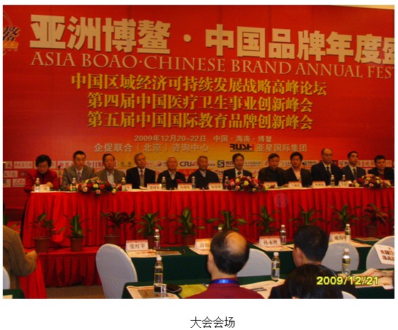 2009年歲末的海南鮮花盛開(kāi)暖意濃濃,備受矚目的“亞洲博鰲·中國(guó)品牌年度盛典”大型系列活動(dòng)12月20~22日在海南博鰲隆重舉行。中宣部原部長(zhǎng)朱厚澤、全國(guó)工商聯(lián)原副主席桓玉珊、衛(wèi)生部原副部長(zhǎng)孫隆椿、國(guó)家中醫(yī)藥管理局原副局長(zhǎng)褚國(guó)本等領(lǐng)導(dǎo)出席會(huì)議。