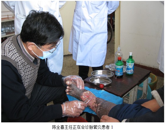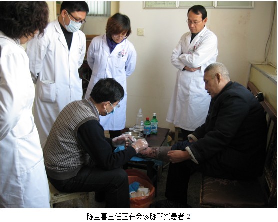 2012年11月26日,安陽市脈管炎醫(yī)院院長李建芬邀請中國中西醫(yī)結(jié)合學(xué)會燒傷專業(yè)委員會委員陳全喜主任會診兩位脈管炎病人。