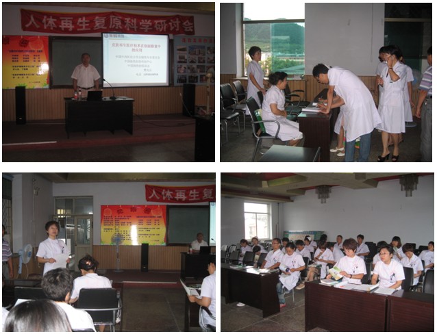 會議由清原縣中醫(yī)院朱建明科長主持,該院具有較好的學(xué)術(shù)氣氛,院內(nèi)各科室主任、醫(yī)生、護士長37人參加報告會,報告中醫(yī)護人員認(rèn)真聆聽兼做筆記,不時還有疑問提出,說明了他們對再生技術(shù)先進性、可操作性、方法簡單易行產(chǎn)生了理性的認(rèn)識,尤其對斷指再生表現(xiàn)出驚呀、贊許及些許的疑問,說明了教學(xué)普及知識培訓(xùn)的可行性在基層單位尤為重要。報告結(jié)束后感染科主任、消化內(nèi)科主任、肛腸科主任紛紛提出問題、普外科就皮膚疤痕問題同樊教授進行了廣范深入的探討,他們均得到了滿意答復(fù),這次學(xué)術(shù)報告會圓滿結(jié)束。