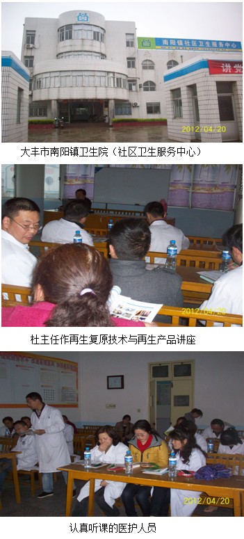 2012年4月20日下午,中國中西醫(yī)結(jié)合學會燒傷專業(yè)委員會委員、北京美寶燒傷創(chuàng)瘍研究所臨床部研究員、燒傷創(chuàng)瘍專家杜福勤主任和江蘇省區(qū)南京辦事處劉恒主任、吉曉紅同志于4月20日下午冒雨在大豐市南陽鎮(zhèn)衛(wèi)生院舉辦再生復原技術(shù)及再生產(chǎn)品講座,下午四點三十分講座正式開始,由醫(yī)院醫(yī)教科丁科長主持講座。杜主任以“再生復原技術(shù)與再生產(chǎn)品”進行講座演講,從再生復原技術(shù)理論基礎(chǔ)談到再生產(chǎn)品,重點介紹美寶創(chuàng)瘍貼和美寶疤痕軟膏的臨床治療功能、臨床療效、愈后效果。介紹了美寶創(chuàng)瘍貼的產(chǎn)品特點、臨床注意事項及不良反應(yīng)及清創(chuàng)應(yīng)用方法。此次講座受到了醫(yī)護人員的歡迎,達到了深入推廣再生復原技術(shù)地目的,為再生復原技術(shù)和再生產(chǎn)品盡早造?;鶎訜齻麆?chuàng)瘍潰瘍患者、福祉基層百姓奠定了良好的開端。
