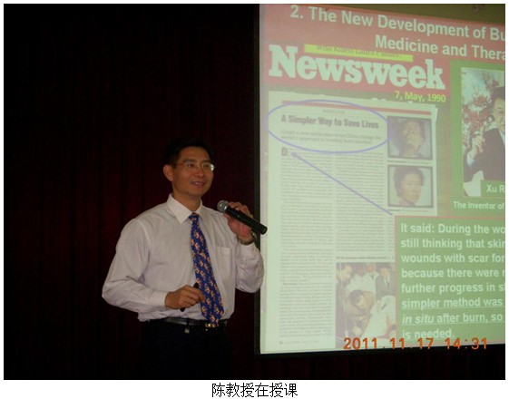 經(jīng)過(guò)北京片區(qū)彭韶君、郭君、何蓮聯(lián)絡(luò),由陳永翀教授授課,在2011年11月17號(hào)由醫(yī)務(wù)科組織了全院多科室美寶再生技術(shù)培訓(xùn),醫(yī)院多功能廳坐滿了聽課醫(yī)生,來(lái)自外科、皮膚科、骨科、婦產(chǎn)科、急診科等科室。