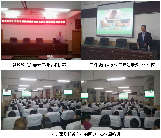 2012年11月19號(hào),中國(guó)中西醫(yī)結(jié)合學(xué)會(huì)燒傷專(zhuān)業(yè)委員會(huì)常委兼秘書(shū)、《中國(guó)燒傷創(chuàng)瘍雜志》副總編輯、北京燒傷創(chuàng)瘍研究所副所長(zhǎng)、臨床部主任王洪生研究員應(yīng)田東縣中醫(yī)院的邀請(qǐng),到該醫(yī)院進(jìn)行 “再生療法在難愈性創(chuàng)瘍創(chuàng)面治療新進(jìn)展”專(zhuān)題臨床學(xué)術(shù)講座。