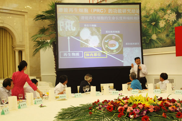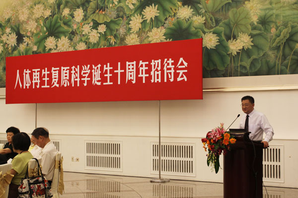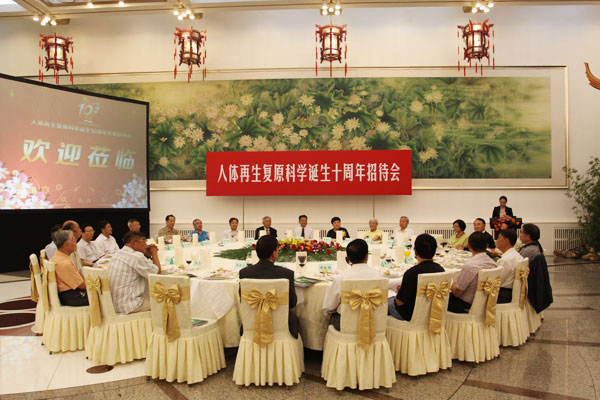 2012年8月16日晚,“人體再生復(fù)原科學(xué)答謝招待會(huì)”晚宴在人民大會(huì)堂澳門廳隆重舉行,拉開(kāi)了人體再生復(fù)原科學(xué)誕生十周年的慶典盛幕,不僅通過(guò)“人類再生生命世界”的報(bào)告系統(tǒng)展現(xiàn)了人體再生復(fù)原科學(xué)十年的實(shí)踐成就,更對(duì)多年來(lái)支持和保護(hù)人體再生復(fù)原科學(xué)發(fā)展的各位領(lǐng)導(dǎo)和朋友表達(dá)了深深的謝意。