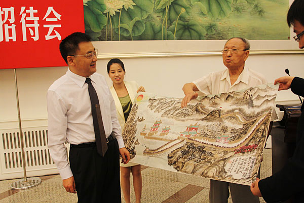 令人感動(dòng)的場(chǎng)面出現(xiàn)了,來(lái)自山東威海、86歲的王瑞榮老先生也走到了前臺(tái),他曾經(jīng)很不幸,罹患了肺癌腺癌(臨終晚期),但是他又非常幸運(yùn),遇到了徐榮祥教授,加入了再生抗癌研究計(jì)劃,成為人體再生復(fù)原科學(xué)的受益者,讓他以86歲的高齡獲得了重生。老人現(xiàn)在精神矍鑠,底氣十足,步履穩(wěn)健,自我感覺(jué)越活越年輕,面前的這位充滿活力的老人,難以想象這是個(gè)癌癥患者,甚至很難相信他已是耄耋之年。為了表達(dá)他的感激之情,特地為徐教授送上他自己作的畫,對(duì)于樸實(shí)的老人,感激語(yǔ)言已經(jīng)難以表達(dá)他的內(nèi)心感受,唯希望通過(guò)畫來(lái)表達(dá)他的心聲。