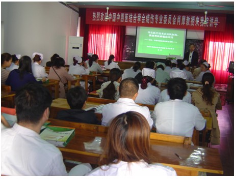 來自宣城市和周邊地區(qū)的醫(yī)護人員,參加了再生醫(yī)療技術(shù)學(xué)習(xí)。報告中,肖摩教授給大家圖文并茂的展示了原位再生醫(yī)療技術(shù)學(xué)術(shù)資料以及有關(guān)燒燙傷再生技術(shù)診治的新進展,并對燒燙傷的預(yù)防、搶救、早晚期的實踐經(jīng)驗進行了交流。聽課的醫(yī)務(wù)人員個個聚精會神,紛紛記錄著有關(guān)燒燙傷、創(chuàng)瘍治療的技術(shù)方法和規(guī)范流程,展現(xiàn)了濃厚的學(xué)習(xí)氛圍。