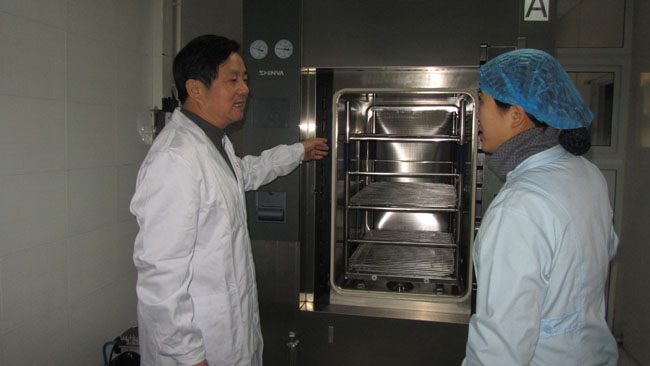 中國燒傷創(chuàng)瘍科技中心胡棟材教授曾多次蒞臨美寶燒傷創(chuàng)瘍空分醫(yī)院指導(dǎo)工作,這次看到醫(yī)院新裝修擴(kuò)建的病房整潔舒適,醫(yī)療設(shè)備齊全醫(yī)護(hù)人員為患者精湛醫(yī)療服務(wù)而甚感欣慰,胡教授說:“我們做的事業(yè)是積善積德的事情,要用我們的服務(wù)用我們先進(jìn)的技術(shù)治好更多的病患,服務(wù)于大眾”。在燒傷整形科的重癥監(jiān)護(hù)室,胡教授深入病房親自參與燒傷面積達(dá)到55%的三度硫酸燒傷患者的清創(chuàng)與換藥,并特別強(qiáng)調(diào)了規(guī)范操作細(xì)節(jié)的要求及重癥監(jiān)護(hù)室無菌病房的管理。在瘡瘍科胡教授對幾例重度褥瘡病人進(jìn)行了查房,并對于理想的治療效果給予贊揚(yáng)“咱們的褥瘡治療技術(shù)已經(jīng)達(dá)到了國際先進(jìn)水平!”