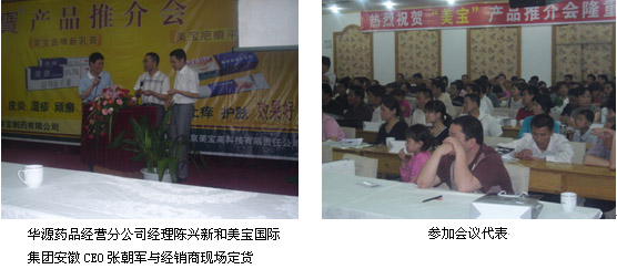 在這收獲的季節(jié),美寶國(guó)際集團(tuán)和安徽華源醫(yī)藥股份有限公司聯(lián)合在安徽太和鏡湖賓館舉行美寶國(guó)際集團(tuán)產(chǎn)品推介會(huì)。選擇在這時(shí)舉辦此次活動(dòng)主要目的是加深美寶國(guó)際集團(tuán)和安徽華源醫(yī)藥股份有限公司之間的相互了解和信任、向各級(jí)經(jīng)銷商介紹在世界生命科學(xué)領(lǐng)域中處于霸主地位的美寶國(guó)際集團(tuán)及其高科技含量的系列美寶產(chǎn)品,使大家更全面、更深入地認(rèn)識(shí)再生醫(yī)學(xué)及系列產(chǎn)品,為即將到來(lái)的美寶產(chǎn)品銷售旺季作好準(zhǔn)備。
