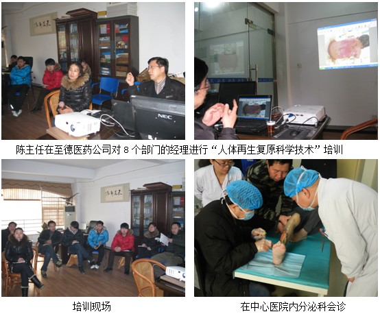 2013年元月18號(hào)下午2點(diǎn),中國(guó)中西醫(yī)結(jié)合學(xué)會(huì)燒傷專業(yè)委員會(huì)委員陳全喜主任醫(yī)師在新鄉(xiāng)市至德醫(yī)藥公司對(duì)8個(gè)部門(mén)的經(jīng)理進(jìn)行了“人體皮膚原位再生醫(yī)療”技術(shù)的培訓(xùn)。