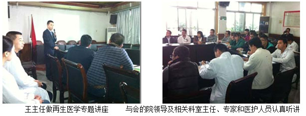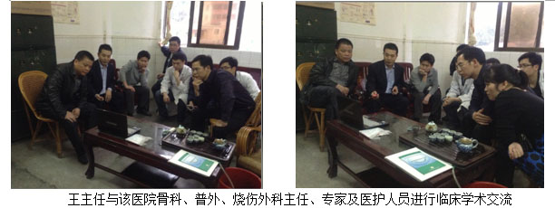 學(xué)術(shù)講座于當(dāng)日下午下午4:00在該醫(yī)院的外科主任辦公室召開(kāi)。該醫(yī)院的骨外科何平主任、普外科劉主任及其醫(yī)院各外科系統(tǒng)負(fù)責(zé)人及醫(yī)護(hù)人員10余人參加了講座會(huì)議。會(huì)中,王主任結(jié)合了大量的臨床病例圖片,主要針對(duì)燒傷、糖尿病足、褥瘡等各類(lèi)難愈性創(chuàng)傷、潰瘍創(chuàng)面的規(guī)范化處理方法與技巧、注意事項(xiàng)等進(jìn)行了細(xì)致地講解。會(huì)議持續(xù)到下午近六點(diǎn),何主任表示再生療法在臨床上相對(duì)于他們來(lái)說(shuō),是一個(gè)全新的治療方法,他們都感到非常的信服,希望王主任以后再臨床上能多多的指導(dǎo),以更好的造福于患者。