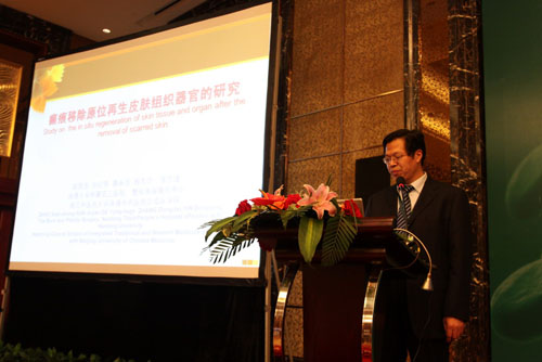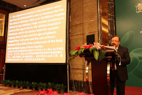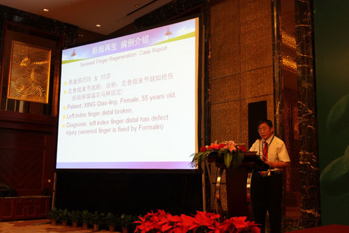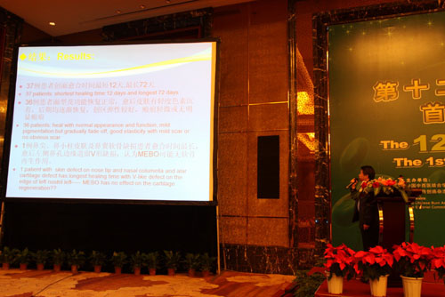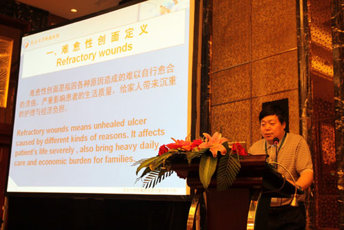 學(xué)術(shù)交流于8點30正式開始,國內(nèi)外代表輪流進行學(xué)術(shù)交流報告。首先,來自馬來西亞的燒傷整形外科醫(yī)生Dr. Shah Jumaat BinMohd Yussof以“再生醫(yī)療技術(shù)與微粒皮種植術(shù)在雙溪毛魯醫(yī)院的臨床經(jīng)驗”為主題進行了交流;接著,趙賢忠教授以“疤痕移除原位再生皮膚組織器官的研究”為主題進行交流;來自敘利亞整形外科中心主任Dr. Adham mansour以“20年再生醫(yī)療技術(shù)在敘利亞的臨床應(yīng)用經(jīng)驗”為主題進行學(xué)術(shù)報告;來自馬來西亞的婦產(chǎn)科醫(yī)生Dr.Noor HaIiZa Yussoff以“再生醫(yī)療技術(shù)治療感染的腹部手術(shù)切口以及其它婦產(chǎn)科創(chuàng)面的臨床經(jīng)驗”為主題作了交流;隨后,來自四川什邡程德躍院長介紹了皮膚原位再生復(fù)原技術(shù)在磷燒傷創(chuàng)面治療中的臨床應(yīng)用,什邡地區(qū)是磷燒傷多發(fā)的區(qū)域,當(dāng)?shù)氐幕S多,在多年的臨床實踐中,他們積累了大量經(jīng)驗,為數(shù)百位磷燒傷患者挽救了生命,使創(chuàng)面得到了良好地愈合;成都市第三人民醫(yī)院的龔麟主任介紹了原位再生醫(yī)療技術(shù)在美容激光治療后修復(fù)皮膚的經(jīng)驗,他展示了大量美容案例,有面部雀斑、血管瘤、瘢痕、復(fù)發(fā)性甲溝炎、紋身的祛除等,效果顯著;印度尼西亞臨床教育培訓(xùn)中心主席、整形外科醫(yī)生Dr. Teddy O.H. Prasetyono博士介紹了瘢痕為主的創(chuàng)面愈合,這位醫(yī)生給代表們的印象非常深刻,他雖然是一位殘疾人,但是他的演講生動,富有感染力,從他所介紹的病例中可以看出,他對于皮膚再生醫(yī)療技術(shù)的認可與敬業(yè)精神;之后,四川甘孜州人民醫(yī)院燒傷整形科主任李正希介紹了皮膚再生醫(yī)療技術(shù)在高原地區(qū)的應(yīng)用體會,李主任曾經(jīng)是一位胸外科醫(yī)生,由于甘孜州地處高原,很多燒傷患者從前只能送至成都等地的醫(yī)院救治,往往因為錯過了治療的最佳時機,給患者的生命安全乃至創(chuàng)面的愈合造成不利的影響,于是,他在學(xué)習(xí)了皮膚再生醫(yī)療技術(shù)之后,在醫(yī)院的支持下成立了燒傷科,從此,當(dāng)?shù)匾患壷苓叺臒隣C傷患者在當(dāng)?shù)鼐涂梢缘玫搅己玫木戎?;突尼斯國家骨科研究研究院理療康?fù)科骨外科主任Dr. Catherine Dziril教授分享了她應(yīng)用再生醫(yī)療技術(shù)治療壓瘡的經(jīng)驗;四川雅安人民醫(yī)院燒傷整形科主任付子俊介紹了皮膚癌的臨床治療體會,付主任和他的團隊不僅僅規(guī)范地將皮膚再生醫(yī)療技術(shù)應(yīng)用于燒傷創(chuàng)瘍等創(chuàng)面的修復(fù)中,尤其擅長治療皮膚癌,大量的皮膚癌患者經(jīng)過治療后均痊愈并無復(fù)發(fā)發(fā)生;陜西安康市中醫(yī)院王俊主任介紹了MEBO治療面部軟組織缺損的臨床體會;河南寶豐中醫(yī)院任建生主任介紹了斷指再生治療經(jīng)驗,他所治療的一位患者被評為第三屆創(chuàng)瘍康復(fù)明星,這位患者的手指末端離端得到了完全再生修復(fù),這種修復(fù)不僅僅是皮膚的再生修復(fù),而是包括指甲在內(nèi)的手指的全部組織器官的再生修復(fù),斷指的再生修復(fù)在很多醫(yī)院都有大量病例,本屆會議的交流資料《燒傷創(chuàng)瘍康復(fù)明星集萃》中發(fā)布了很多典型的斷指再生修復(fù)病例;四川涼山衛(wèi)校馮映東院長介紹了高壓電弧燒傷的MEBO治療分析;成都大學(xué)附屬醫(yī)院急診科主任梁隆斌教授介紹了再生醫(yī)療技術(shù)在各種急診創(chuàng)面的應(yīng)用,急診的外傷患者較多,及時的創(chuàng)面處理為后續(xù)的治療節(jié)省了寶貴的時間,而且,有的患者經(jīng)過門診治療后,由于康復(fù)時間縮短,節(jié)省了因住院給患者帶來的經(jīng)濟負擔(dān);延安大學(xué)附屬醫(yī)院薛宏斌主任介紹了難愈性創(chuàng)面的MEBT/MEBO臨床應(yīng)用;中國中西醫(yī)結(jié)合學(xué)會燒傷專業(yè)委員會委員金黨軍主任介紹了皮膚原位再生復(fù)原技術(shù)瘢痕防治臨床規(guī)范應(yīng)用,金主任對瘢痕的防治有著多年的臨床經(jīng)驗,尤其掌握了規(guī)范的操作技術(shù),很多醫(yī)院的醫(yī)生和患者在遇到此類問題的時候,都會向他請教,他通過各種方式對醫(yī)生和患者進行指導(dǎo);江蘇金壇中醫(yī)院燒傷整形科戴揚主任分享了他在應(yīng)用皮膚再生醫(yī)療技術(shù)治療燒傷等創(chuàng)面的經(jīng)驗。