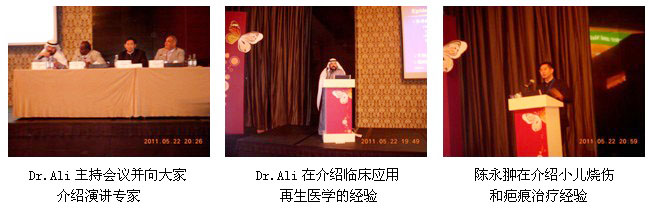 再生醫(yī)學專題會議由阿聯(lián)酋燒傷整形外科學會主席Dr. Ali Numanry主持,在簡短的開幕式上Dr.Ali向大家介紹了各位演講專家,然后馬上進入學術報告和交流議程。首先,Dr. Ali以“MEBT/MEBO---Burns Regenerative Therapy”(MEBT/MEBO---燒傷再生療法)為題,向大家介紹了他學習、應用,再學習、應用再生醫(yī)學的過程和體會:原來他一直都認為MEBO只是一個產(chǎn)品,只是應用MEBO治療一些小面積淺度燒傷。不過,自從去年陳永翀教授安排他到北京見了徐教授,聽了徐教授的一番話后,尤其是到山東泰山醫(yī)學院的實地參觀、考察和交流后,心里豁然開朗,明白了再生醫(yī)學不僅僅是MEBO一個產(chǎn)品那么簡單,而是一整套全新的醫(yī)學體系?;氐降习莺笏匦掳凑赵偕t(yī)學的理論和技術規(guī)范要求治療患者,實現(xiàn)了中等面積深度燒傷的皮膚原位再生復原,并向大家展示了眾多的臨床實例,很具說服力。緊接著,陳永翀應邀以:(1)、“A Retrospective Contrast Study of the Clinical Effects in Treating Pediatric Large Area and Deep Burns”;(2)、“Non-invasive Therapy in Scar Treatment----MEBO Scar Ointment”(“小兒大面積深度燒傷臨床治療效果的對照研究”和“疤痕的非侵入性療法---MEBO疤痕軟膏”)這2個題目為題,向各位臨床專家對照性的介紹了:(1)、再生醫(yī)學在治療小兒大面積深度燒傷的優(yōu)勢和臨床實用性;(2)、MEBO疤痕軟膏的細胞、組織調(diào)控再生機理和具體的臨床使用方法。演講內(nèi)容詳實、方法具體明了,受到歡迎。