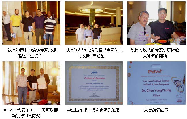 這次大會的最大亮點是MEBO和再生醫(yī)學。另外,這次大會和去年的會議相比也發(fā)生了明顯的變化:1、來自歐洲的Speaker較上次減少了(由去年的10名減少到5位),再生醫(yī)學的演講專家增加了(由去年的5名增加到了10名);2、再生醫(yī)學專題研討會的時間由去年的1小時增加到2小時(實際上是3h);3、原計劃只安排來自中國的陳永翀教授2場演講增加到了3場;4、這次再生醫(yī)學與傳統(tǒng)西醫(yī)學在燒傷、創(chuàng)傷和疤痕治療領域的同臺競技,再生醫(yī)學不管是在干細胞的研究與應用,燒傷、創(chuàng)傷、潰瘍和疤痕的治療等都明顯勝出!再生醫(yī)學的學術地位、受認可程度和被歡迎的程度大為提升;5、歐洲的專家開始關注再生醫(yī)學,并主動要求引進該技術和做臨床研究等。應該說這是一次非常具有里程碑意義的國際學術大會。我們可以預測:在明年或不久的將來,下一屆的迪拜國際創(chuàng)傷與疤痕治療大會將完全變成再生醫(yī)學的學術大會!
