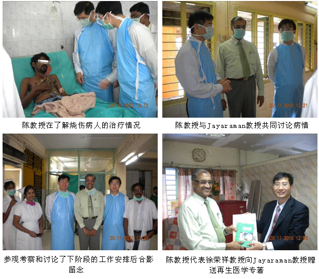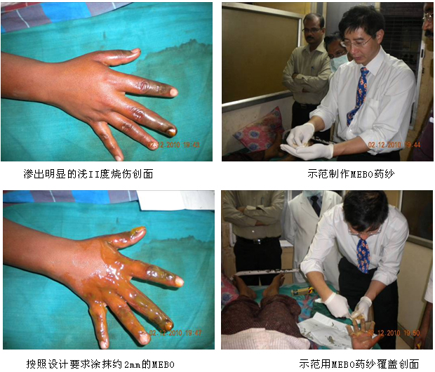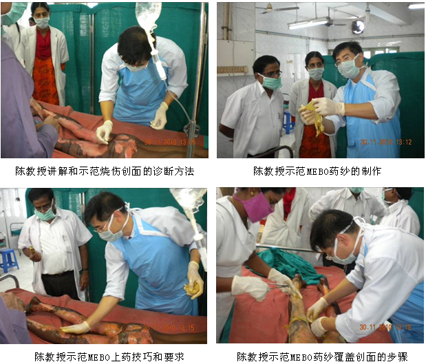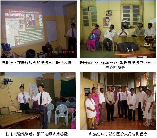 隨著徐榮祥教授發(fā)明的燒傷再生醫(yī)學(xué)在國際上的影響力和知名度的擴大,越來越多的國家希望早日引進再生醫(yī)學(xué)技術(shù)和配套產(chǎn)品-----美寶濕潤燒傷膏(MEBO),印度便是其中之一。為了盡快引進MEBO,經(jīng)印度藥監(jiān)局(DCGI)的批準(zhǔn),MEBO在印度的III期臨床試驗于2010年7月正式啟動并在各級醫(yī)院逐步展開。為了保證臨床試驗的安全、順利進行和對新增加的2家大型政府醫(yī)院的燒傷中心的參研人員進行培訓(xùn),同時也是應(yīng)印度燒傷整形外科學(xué)會主席、欽奈醫(yī)學(xué)院附屬醫(yī)院燒傷中心主任Jayaraman教授的邀請,2010年年末,中國燒傷創(chuàng)瘍科技中心臨床部主任、北京榮祥再生醫(yī)學(xué)研究所副所長陳永翀教授和技術(shù)支持專員張印來到了Chennai市醫(yī)學(xué)院附屬醫(yī)院(KMC)和Madurai市醫(yī)科大學(xué)附屬醫(yī)院,向臨床醫(yī)護人員介紹了燒傷再生醫(yī)學(xué)研究應(yīng)用新進展,對參與臨床試驗的人員進行了培訓(xùn),并指導(dǎo)臨床試驗工作等。再生醫(yī)學(xué)的先進性、實用性、有效性和便于掌握等,很受印度臨床醫(yī)師的歡迎,目前臨床試驗正在有序進行,并取得了初步的成功。現(xiàn)給讀者做一個簡短的介紹: