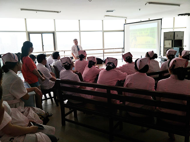 7月9日,燒傷創(chuàng)瘍?cè)偕t(yī)療專(zhuān)家、中國(guó)中西醫(yī)結(jié)合學(xué)會(huì)燒傷專(zhuān)業(yè)委員會(huì)常務(wù)委員王洪生受湛江市第二人民醫(yī)院邀請(qǐng),對(duì)全院護(hù)士長(zhǎng)及壓瘡護(hù)理小組進(jìn)行再生醫(yī)療技術(shù)對(duì)糖尿病足潰瘍及四級(jí)壓瘡治療培訓(xùn),進(jìn)一步提升該院再生醫(yī)療技術(shù)在糖尿病足領(lǐng)域的應(yīng)用規(guī)范;同時(shí)應(yīng)湛江市第四人民醫(yī)院老年科邀請(qǐng),對(duì)全科室醫(yī)生,護(hù)士26人就再生醫(yī)療技術(shù)在糖尿病足潰瘍、四期壓瘡創(chuàng)面處理要點(diǎn)進(jìn)行專(zhuān)題臨床技術(shù)培訓(xùn),并應(yīng)邀為該科收治1例Wagner4級(jí)糖尿病足多發(fā)潰瘍并感染的患者進(jìn)行了會(huì)診。