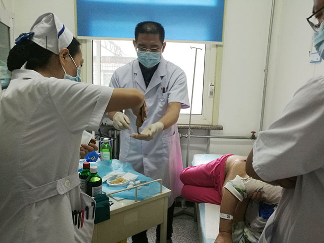 7月16日上午,應(yīng)天津市人民醫(yī)院邀請(qǐng),燒傷創(chuàng)瘍?cè)偕t(yī)療專(zhuān)家、中國(guó)中西醫(yī)結(jié)合學(xué)會(huì)燒傷專(zhuān)業(yè)委員會(huì)常務(wù)委員王洪生到血管外科會(huì)診幾例難愈合創(chuàng)面患者,現(xiàn)場(chǎng)示范并指導(dǎo)醫(yī)生使用再生技術(shù)換藥。天津市人民醫(yī)院血管外科受劉主任表示,希望今后雙方加強(qiáng)合作,讓更多患者受益!