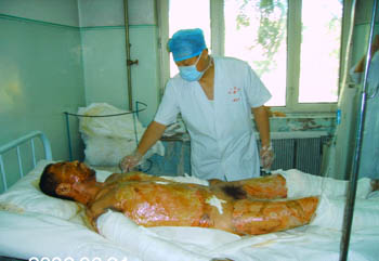 牡丹江市第一人民醫(yī)院(三甲)是東北邊陲一所綜合實(shí)力較強(qiáng)的核心基地醫(yī)院,擔(dān)負(fù)著該片區(qū)臨床培訓(xùn),新技術(shù)推廣等任務(wù)。姜月虎主任運(yùn)用徐教授發(fā)明的美寶再生科學(xué)理論和燒傷皮膚再生醫(yī)療技術(shù),成功的治愈數(shù)例90%以上大面積燒傷病人,其中兩例被評康明星。今年8月份又成功的救治一例大面積燒傷病人?;颊唛Z某,男、30歲、8月17日被汽油火焰燒傷,TBSA90%,其中深三度30%,深二度60%、入院后嚴(yán)格按照燒傷皮膚再生醫(yī)學(xué)臨床手冊規(guī)范要求,采取積極有效的抗休克復(fù)蘇措施,對深三度創(chuàng)面應(yīng)用簿化技術(shù) ,使患者平穩(wěn)度過危險期,通過近階段的治療目前患者生命體征平穩(wěn)在康復(fù)治療中。