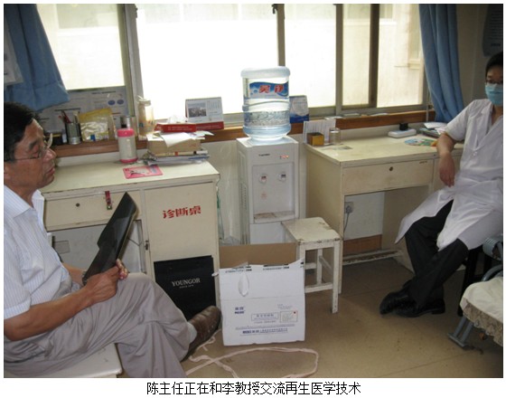 陳全喜同骨科李教授及孫副教授一塊會(huì)診病人?;颊?7歲,2011年12月4號(hào),因車禍造成右下肢脛腓骨粉碎性骨折。從臨床看,脛骨外漏長12cm,寬6.3cm缺損。骨表面色黃,骨邊緣暗黃色,骨髓缺損(脛骨下端直踝關(guān)節(jié),未發(fā)現(xiàn)有骨髓)。骨缺損處呈不規(guī)則形,固定鋼板,固定針暴露,周圍皮膚暗黑,邊緣齊純。李教授說:“我們已經(jīng)做過六次手術(shù),其他部位都長好了,就是這個(gè)部位長不住?!标愔魅握f:“臨床最多見的是粉碎性骨折,尤其是脛前骨難以愈合。因?yàn)榧∪馍傺\(yùn)差,再加上有其他原因,這個(gè)部位是骨科醫(yī)生棘手的技術(shù)問題。這種創(chuàng)面需用一種培養(yǎng)細(xì)胞的物質(zhì)對(duì)對(duì)其進(jìn)行治療,能起到一定的療效。美寶皮膚再生技術(shù)目前是國際上較前沿的高科技技術(shù),是培養(yǎng)創(chuàng)面局部缺損的細(xì)胞生長增殖,激活潛藏骨髓、骨皮膚的潛能細(xì)胞。由潛能細(xì)胞轉(zhuǎn)化成體細(xì)胞,由體細(xì)胞轉(zhuǎn)化為干細(xì)胞,修復(fù)骨髓,骨缺損,皮膚組織。最終完成創(chuàng)面修復(fù)任務(wù)。經(jīng)過一段時(shí)間的治療,效果就會(huì)出現(xiàn)?!?/FONT>