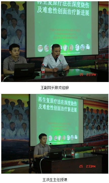2012年7月25日,應(yīng)六枝特區(qū)人民醫(yī)院邀請,中國中西醫(yī)結(jié)合學(xué)會燒傷專業(yè)委員會常委兼秘書、《中國燒傷創(chuàng)瘍雜志》副總編輯、北京美寶燒傷創(chuàng)瘍研究所副所長、第二臨床研究部主任王洪生研究員來到該院,對該院醫(yī)護人員進行了再生復(fù)原療法在深度燒傷及難愈性創(chuàng)面治療新進展的規(guī)范性培訓(xùn)及學(xué)術(shù)交流。