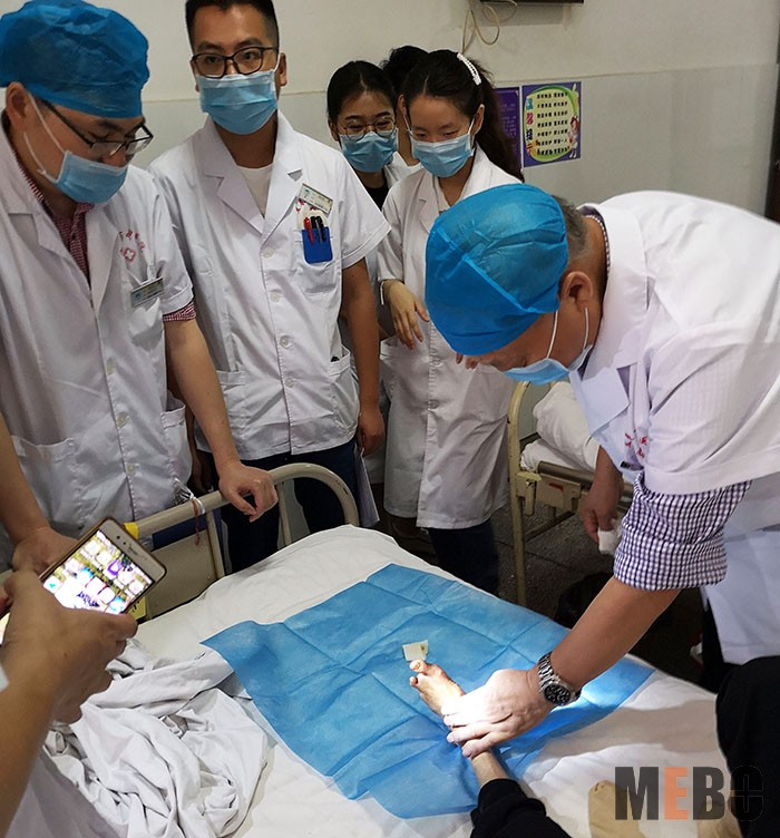 6月24日,北京榮祥再生醫(yī)學(xué)研究所副所長、《中國燒傷創(chuàng)瘍雜志》編委金黨軍主任,應(yīng)邀來到宜春市中醫(yī)院,在鐘主任和彭主任的陪同下為潰瘍、糖尿病足,燒燙傷患者會診,并給醫(yī)護(hù)人員們現(xiàn)場親自示范再生醫(yī)療技術(shù)規(guī)范換藥流程,患者萬分感激。大家也將平時臨床換藥中遇到的問題同金主任做了詳細(xì)溝通,大家對金主任指導(dǎo)教學(xué)表示了感謝,相信再生醫(yī)療技術(shù)會讓更多患者受益!