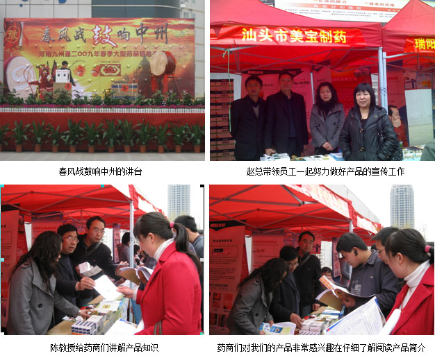 陽春三月,河南中州召開了河南省九州通2009年春季大型藥品信息交流會(huì),諸多藥商紛紛前來參加會(huì)議。展銷會(huì)共舉行了三天,參加會(huì)的有各地市的商業(yè)公司、產(chǎn)品分銷商及終端客戶。河南省美寶也帶著美寶國(guó)際集團(tuán)的多項(xiàng)再生產(chǎn)品參加了此次 “春風(fēng)戰(zhàn)鼓響中州”交流會(huì)進(jìn)行推介。