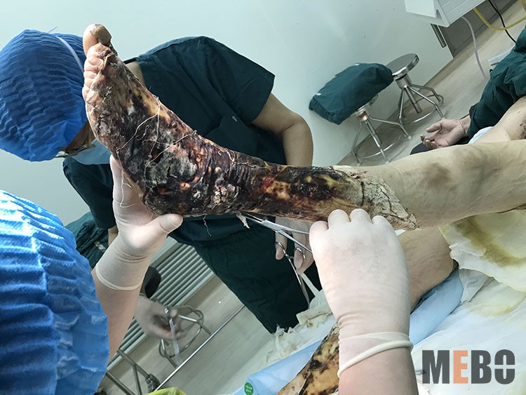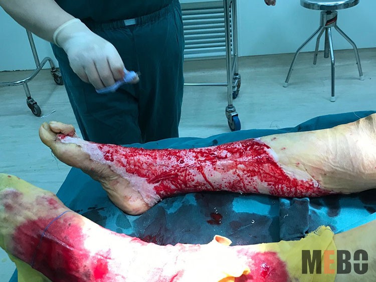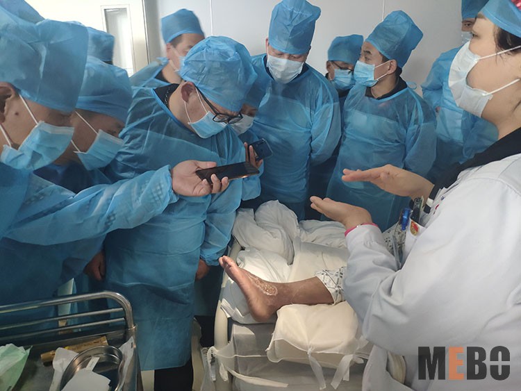 11月26日,中國中西醫(yī)結(jié)合學(xué)會燒傷專業(yè)委員會副主委、南通三院燒傷整形美容與創(chuàng)面修復(fù)科主任—趙賢忠教授受邀到南通中醫(yī)院,對一例開水燙傷創(chuàng)面植異種皮術(shù)后皮下出血感染患者進(jìn)行了會診。手術(shù)去除異種皮后改用美寶濕潤燒傷膏行皮膚再生療法處理,創(chuàng)面處理效果理想,受到科室全體醫(yī)護(hù)人員的贊揚(yáng)!