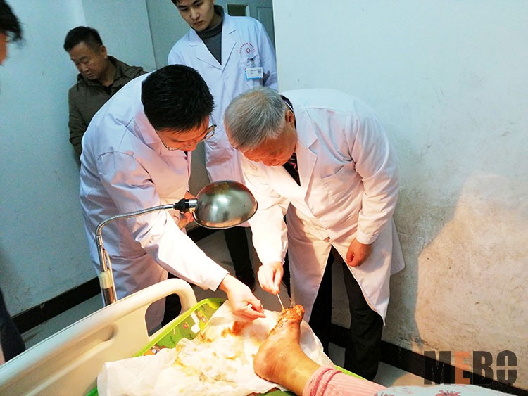 11月27日,北京榮祥再生醫(yī)學(xué)研究所副所長、《中國燒傷創(chuàng)瘍雜志》編委金黨軍教授到嵩縣黃金醫(yī)院對改院在收的一例85歲高齡的大面積燒傷病人進(jìn)行會診,對該院再生醫(yī)療技術(shù)在糖足,壓瘡方面的應(yīng)用給與充分肯定,并示范燒傷創(chuàng)面的規(guī)范換藥,在場醫(yī)護(hù)人員均表示受益匪淺。