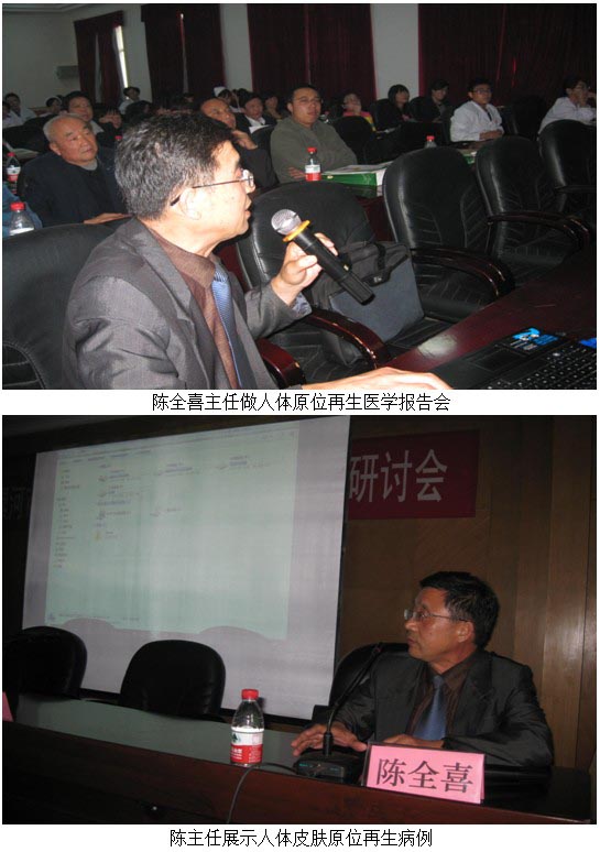 2011年9月26日下午2點(diǎn)整,講座在該院外科學(xué)術(shù)廳舉行,該醫(yī)院外科主任,省中西醫(yī)結(jié)合學(xué)會(huì)、燒傷專業(yè)委員會(huì)副主任委員王秉真、漯河市中心醫(yī)院外科主任錢(qián)紅軍主持了學(xué)術(shù)講座,在學(xué)術(shù)講座中,陳主任首先向參會(huì)全體醫(yī)護(hù)人員介紹了我國(guó)著名生命科學(xué)家徐榮祥教授。然后結(jié)合大量的臨床病例圖片,主要針對(duì)不同程度的燒傷后期創(chuàng)面及各類難愈性創(chuàng)傷、潰瘍、壓瘡、疤痕等疾病的預(yù)防及治療方法和注意事項(xiàng)。對(duì)創(chuàng)傷性骨病“慢性骨髓炎”的臨床治療也進(jìn)行了認(rèn)真細(xì)致地講解,并解答了醫(yī)師在處理骨髓炎中遇到的疑難問(wèn)題;向?qū)W員們講解微粒皮種植術(shù)在創(chuàng)傷、燒傷、潰瘍創(chuàng)面與濕潤(rùn)燒傷膏聯(lián)合治療的病例,展示了種植皮漿的圖像資料,認(rèn)真解答了醫(yī)護(hù)人員提出的問(wèn)題。