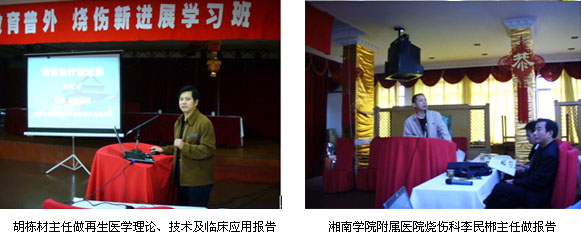 作為此次培訓的關鍵環(huán)節(jié),胡棟材主任以圖文并茂的形式深入淺出的講解了徐榮祥教授發(fā)明的再生醫(yī)學的成果在美國獲得的多項專利、再生醫(yī)學基礎理論、再生醫(yī)療技術的全身和局部規(guī)范治療,應用再生醫(yī)療技術成功救治大面積燒傷的病例展示、及再生技術在多學科的應用。之后,湘南學院附屬醫(yī)院燒傷科李民郴主任就本院應用再生醫(yī)學醫(yī)療技術成功救治大面積燒傷病人作了專題報告。