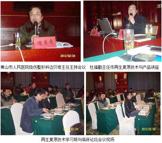 由中國中西醫(yī)結(jié)合學(xué)會燒傷專業(yè)委員會駐安徽省辦事處主辦、黃山市輝瑞醫(yī)藥公司協(xié)辦的黃山市高級醫(yī)師再生復(fù)原技術(shù)學(xué)習(xí)班暨臨床論壇在黃山市華茂國際大酒店會議廳正式開幕,二0一二年二月二十四日下午13:50分會議正式開始,來自安徽黃山市三區(qū)四縣的副主任以上的高級醫(yī)師30余人參加了會議。