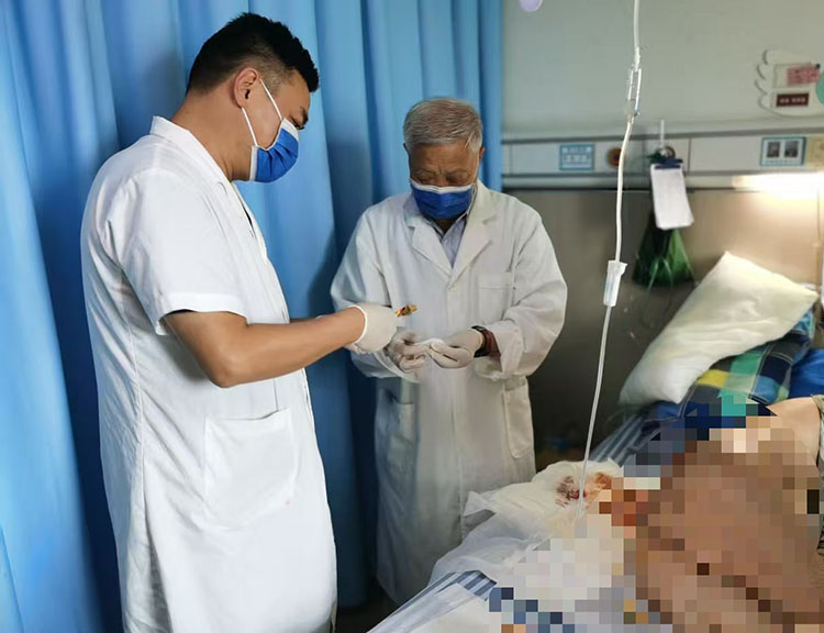 7月31日,應(yīng)湘潭市第六人民醫(yī)院創(chuàng)面修復(fù)科李湘輝主任的邀請(qǐng),《中國燒傷創(chuàng)瘍雜志》編委、燒傷創(chuàng)瘍?cè)偕t(yī)療技術(shù)臨床專家金黨軍,到科室會(huì)診一例多發(fā)性壓瘡患者,金黨軍主任親自示范再生醫(yī)療技術(shù)換藥流程,強(qiáng)調(diào)了換藥過程中的禁忌和注意事項(xiàng),并交流了綜合治療方案,得到了科室主任的高度認(rèn)可,再生醫(yī)療技術(shù)在湖南省湘中地區(qū)醫(yī)療單位逐漸擴(kuò)大普及和應(yīng)用,為廣大慢性創(chuàng)面患者帶來了福音。