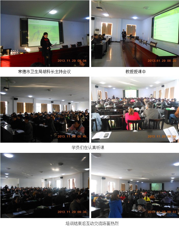 2013年11月29日中國中西醫(yī)結合學會燒傷專業(yè)委員會常委、北京燒傷創(chuàng)瘍研究所副所長、《中國燒傷創(chuàng)瘍雜志》常委編委金黨軍教授,應邀來到美麗的常德市。常德市衛(wèi)生局組織了常德市區(qū)、臨澧縣、漢壽縣、津市、石門縣、桃源縣、澧縣各鄉(xiāng)鎮(zhèn)衛(wèi)生院及社區(qū)醫(yī)院骨干醫(yī)生進行適用醫(yī)療技術培訓班!參加培訓的單位及人員達到200人!金黨軍教授在常德市警官培訓學校的會議室對參會的200人進行了皮膚原位再生醫(yī)療技術在治療難愈性創(chuàng)面領域的培訓。金教授講到 “人體再生復原科學”是中國生命科學家徐榮祥教授創(chuàng)立的,而皮膚原位再生醫(yī)療技術在臨床已成為一項成熟的國際性技術,用于治療各類燒傷創(chuàng)面、皮膚潰瘍創(chuàng)面、糖尿病壞死足創(chuàng)面、周圍血管病創(chuàng)面、動脈閉塞癥、血管狹隘性的誘發(fā)的創(chuàng)面、各種難愈合性創(chuàng)面、斷指創(chuàng)面、擠壓創(chuàng)面和外傷感染性創(chuàng)面、新鮮創(chuàng)傷創(chuàng)面等。金黨軍教授深入淺出的理論演講,大量真實病例圖片的療效展示取得了很好的現(xiàn)場效果,聽課的醫(yī)師被人體皮膚原位再生醫(yī)療技術所震驚。