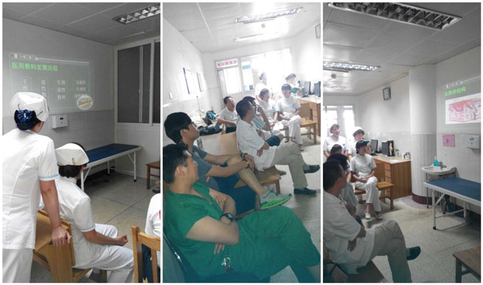 應煙臺山醫(yī)院的邀請,2014年7月9日下午北京燒傷創(chuàng)瘍研究所副所長趙瑞慶教授在該院舉辦了一期多科室燒傷創(chuàng)瘍再生醫(yī)學與療法培訓班。參加培訓的醫(yī)務人員主要來自運動醫(yī)學科、手外科、創(chuàng)傷二科、骨腫瘤等科室的業(yè)務骨干。趙瑞慶教授在培訓班上做了《21世紀濕性醫(yī)用敷料的新進展》的講座。著重介紹了外科敷料的發(fā)展過程,干性敷料濕性敷料臨床運用的對比,分析了干性敷料存在的缺陷。重點敘述了醫(yī)用復合敷料(創(chuàng)瘍貼)的作用機制臨床運用五大優(yōu)勢(改善微循環(huán)學等)。三隔離臨床效果,在創(chuàng)面修復過程中的液化機制。