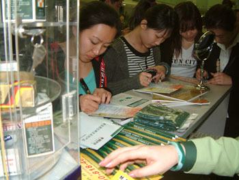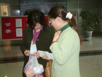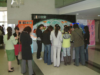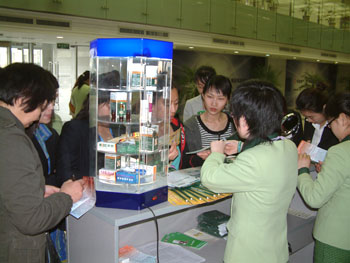上午八時,隨著上班高峰的來臨,匆匆而過的上班族被再生養(yǎng)生營銷集團的展臺深深吸引,紛紛駐足,進行咨詢。一時間,整個大廳里人聲鼎沸,有的先來者趴在展臺上,認真填寫問卷調(diào)查表,同時向再生健康咨詢員詢問一些有關(guān)胃腸的健康問題;有的性急者看到展臺由于人多沒地方填寫調(diào)查表,就干脆以同伴的后背為墊板開始填寫;有的圍在旋轉(zhuǎn)產(chǎn)品展臺前觀看產(chǎn)品,興奮的討論、咨詢。有幾個年齡大點的客戶不只自己咨詢胃腸健康問題,還把同伴介紹過來詢問,再生養(yǎng)生營銷集團的一線人員熱情地給予了解答。