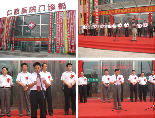2010年8月8日,中國(guó)燒傷創(chuàng)瘍科技中心武安分中心、河北武安仁慈醫(yī)院舉行建院十五周年暨門診大樓落成、邯鄲市中心醫(yī)院技術(shù)協(xié)作醫(yī)院成立慶?;顒?dòng)。三喜臨門,武安市仁慈醫(yī)院張燈結(jié)彩,從醫(yī)院領(lǐng)導(dǎo)到全體員工精神煥發(fā)、喜氣洋洋,武安市領(lǐng)導(dǎo)和人大、政協(xié)以及衛(wèi)生界各級(jí)領(lǐng)導(dǎo)出席盛會(huì),武安市各級(jí)醫(yī)院代表到會(huì)祝賀。