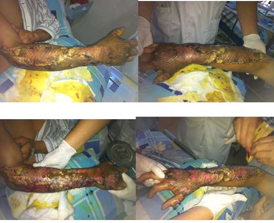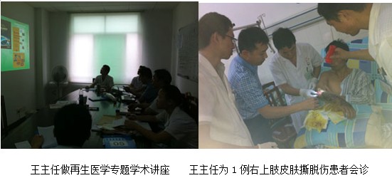 2012年9月26日下午三點(diǎn),應(yīng)該院外科文振偉主任的邀請(qǐng),中國(guó)中西醫(yī)結(jié)合學(xué)會(huì)燒傷專業(yè)委員會(huì)常委兼秘書(shū)、《中國(guó)燒傷創(chuàng)瘍雜志》副總編輯、北京美寶燒傷創(chuàng)瘍研究所副所長(zhǎng)、第二臨床研究部主任王洪生研究員來(lái)到該院到該科作學(xué)術(shù)和技術(shù)上的交流和指導(dǎo),參會(huì)人員為該科室全體醫(yī)護(hù)人員共10余人。會(huì)議在該院外科室舉行, 王主任通過(guò)大量典型的臨床病例圖片及錄像資料詳細(xì)的介紹了再生醫(yī)療技術(shù)對(duì)深度燒傷及難愈性創(chuàng)面作用機(jī)理、再生復(fù)原療法對(duì)各種不同深度燒傷及各種難愈性創(chuàng)面治療方法和規(guī)范操作時(shí)的注意事項(xiàng)等,在授課過(guò)程之中大家認(rèn)真聽(tīng)講,并在授課后大家對(duì)王主任講課內(nèi)容進(jìn)行了深入的探討,王主任根據(jù)大家提出的問(wèn)題有針對(duì)性的進(jìn)行了講解,會(huì)后王主任對(duì)該科一例右上肢撕脫傷病人進(jìn)行會(huì)診,王主任還親自為病人換藥,進(jìn)行了現(xiàn)場(chǎng)的生動(dòng)有效的臨床指導(dǎo)示范。