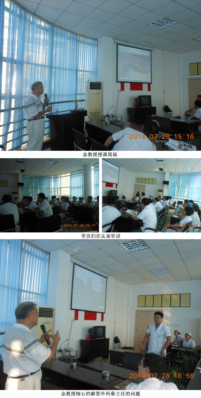 來自該院普外科、骨科、內(nèi)分泌科、婦產(chǎn)科等各個(gè)臨床科室的科主任、醫(yī)生及護(hù)理人員共計(jì)40多人參加了此次培訓(xùn)。在培訓(xùn)中,金教授首先向大家說明燒傷濕潤暴露療法是國家國生部1988年向全國推廣的十年百項(xiàng)科技成功之一、經(jīng)過多年的發(fā)展,已經(jīng)形成了完整的人體再生復(fù)原科學(xué)體系,其器官原位再生復(fù)原路線已經(jīng)被美國政府列為國策。同時(shí)也通報(bào)了我國著名生命科學(xué)家、醫(yī)學(xué)家徐榮祥教授近期在人體再生復(fù)原科學(xué)領(lǐng)域所取得的重大臨床及實(shí)驗(yàn)研究成果。并強(qiáng)調(diào)在干細(xì)胞的研究領(lǐng)域我們國家是處在世界領(lǐng)先的地位。然后結(jié)合大量真實(shí)的臨床病例圖片,向與會(huì)醫(yī)護(hù)人員重點(diǎn)介紹了人體再生復(fù)原科學(xué)臨床應(yīng)用技術(shù)---燒傷創(chuàng)瘍再生醫(yī)學(xué)與療法,是用再生物質(zhì)喚醒和培養(yǎng)人體內(nèi)的潛能再生細(xì)胞發(fā)揮干細(xì)胞功能,使疾病的器官再生復(fù)原。并著重對骨科創(chuàng)瘍及糖尿病足、動(dòng)脈閉塞癥、壓瘡、燒傷,宮頸糜爛等多種臨床棘手的慢性難愈性創(chuàng)傷、潰瘍創(chuàng)面的規(guī)范化處理方法與技巧、注意事項(xiàng)等進(jìn)行了講述。