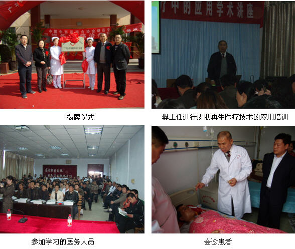 2010年4月8日,經(jīng)中國中西醫(yī)結合學會燒傷專業(yè)委員會審核批復的“中國中西醫(yī)結合學會燒傷專業(yè)委員會廣平縣燒傷創(chuàng)瘍治療基地”在河北省廣平縣人民醫(yī)院舉行了隆重的揭牌儀式。廣平縣縣委領導及衛(wèi)生局領導到會參加了揭牌儀式并發(fā)表了講話,對此次廣平縣醫(yī)院引進皮膚再生醫(yī)療技術并建立廣平縣燒傷創(chuàng)瘍治療基地給予了充分的肯定,并表示縣委及衛(wèi)生局會大力支持此項造福民生的工作。儀式還邀請了中國中西醫(yī)結合學會燒傷專業(yè)委員會常委樊兆宗主任及河北片區(qū)主任王琳琳,樊主任宣讀了中國中西醫(yī)結合學會燒傷專業(yè)委員會關于建立廣平縣醫(yī)院燒傷創(chuàng)瘍治療基地的批復文件。此次活動還邀請了周邊縣的縣鄉(xiāng)鎮(zhèn)醫(yī)院的領導及主任參加觀摩,并邀請樊兆宗主任在儀式結束后進行了“皮膚再生醫(yī)療技術的應用”的培訓講座。此次活動取得了圓滿的成功,廣平縣電視臺等多家媒體也給予了廣泛的報道。