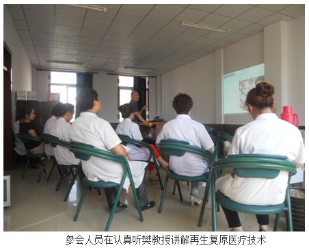 遼寧省朝陽市糖尿病醫(yī)院是遼西地區(qū)頗具規(guī)模的糖尿病??漆t(yī)院,每年接診患者萬余人次。在該院邢光明院長的邀請下,中國中西醫(yī)結合學會燒傷專業(yè)委員會樊兆宗教授來到朝陽,于2012年8月24日下午,在該院的會議室里舉行了人體再生復原科學暨皮膚創(chuàng)面修復的多科室應用講座,會議由該院趙玉彩副院長主持,除值班外的全體醫(yī)護人員參加了這次講座。樊教授系統(tǒng)闡述了皮膚原位再生修復的理論,并針對糖尿病臨床治療中常見的皮膚潰瘍和褥瘡的護理要點和再生醫(yī)療技術的操作規(guī)范進行了重點的講解。報告內容深入淺出,密切結合臨床,讓與會人員深感受益匪淺,紛紛表示這種簡單易行又療效不凡的方法,將會很好地解決那些久治不愈的皮膚創(chuàng)面的難題,為此類患者的治療帶來福音。